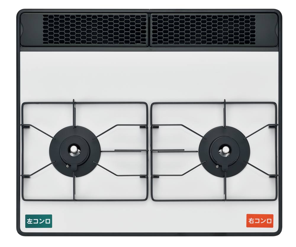 左右のコンロ、グリルのスイッチを色分けすることで、操作ミスを防止