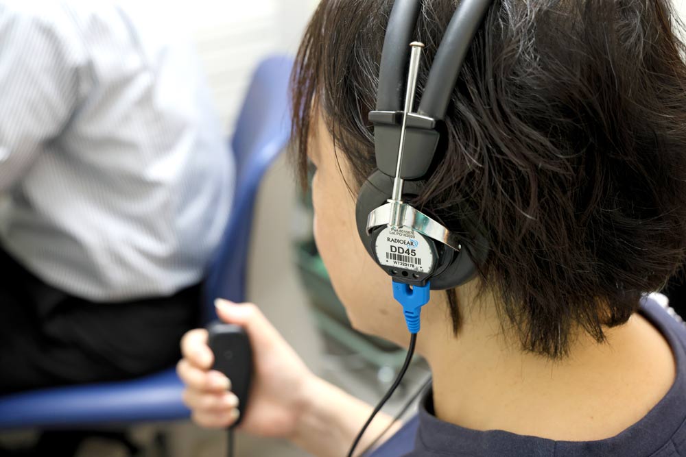 カウンセリング後には、ピーと言う純音を用いる「きこえ」のチェックと、数字や単語を用いる「言葉の聞き取り」チェックを行います