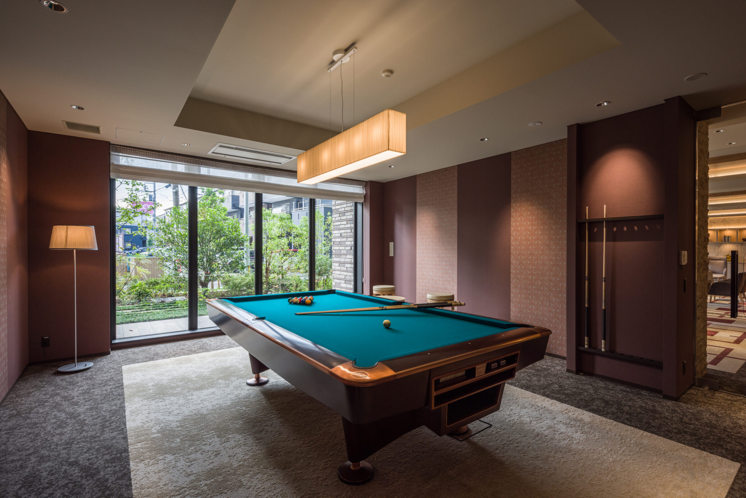 入居者同士で楽しめるビリヤード台が設置されている物件も